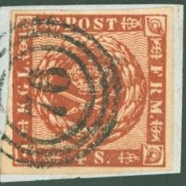 Danmark, stemplet, 1871. afanr.18, 4 sk grå/rød 9 tr med pragt step. Aarhuus jb. Har været repareret og fold