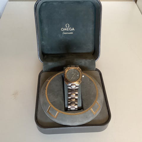 Omega Guld Armbåndsur. Uret har en rund urskive med tydelige visere og markeringer. Leveres i original Omega æske med rød og hvid indretning. Fra 1950’erne måske tidlig 60’ere. Byd gerne.