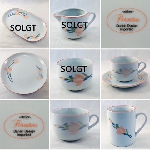 Fra Spanien 1970’erne. Meget charmerende. Haves 4 kopper, 4 underkopper, 4 dessert, te-kande, fløde og sukkerskål. Sælges samlet. Har ingen revner eller skår.