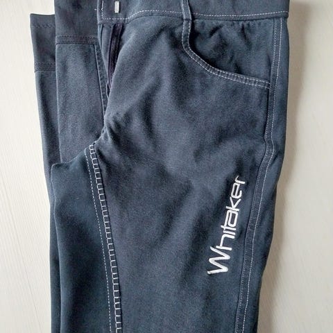 SONNENREITET ridebukser til damer i størrelse M. Bukserne er sorte og lavet med fuldskind for øget holdbarhed. De har lynlåslommer og elastiske paneler for bedre pasform og bevægelsesfrihed.