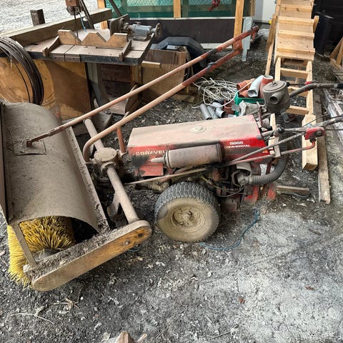 Fejemaskine Green 5S fra 2013. Fejemaskinen starter fint og køre godt i alle gear. Kostene er afmonteret da de er mørnet op. Hvis du sætter nye koste på har du en fin maskine.