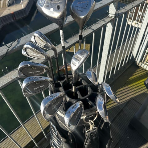 Putter, 3, 5, 8, S, chip&run og 10,5 gr driver og 15 gr wood begge grafit.
