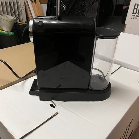 Nespresso kaffe maskine til kaffekapsler. Den hedder Le Cube. Ældre model, men virker fint.