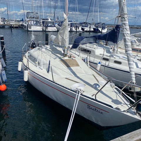 Nipi har været brugt og har brugs spor, mest udadtil og kosmetisk. Hun sejler rigtig fint og har en udenbords motor med 6 hestekræfter købt omkring 2018.