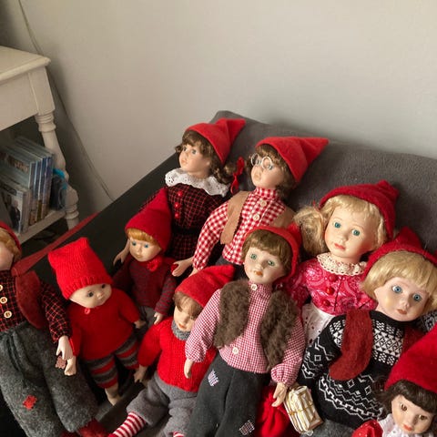 Dukkehus dukke 13cm Kristine med original æske og tilbehør i ny stand. Kan sendes.