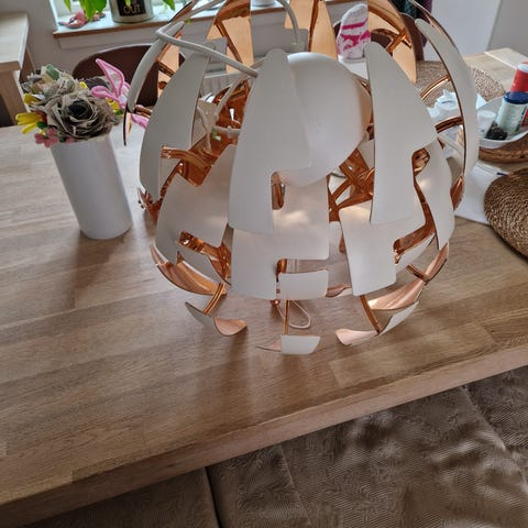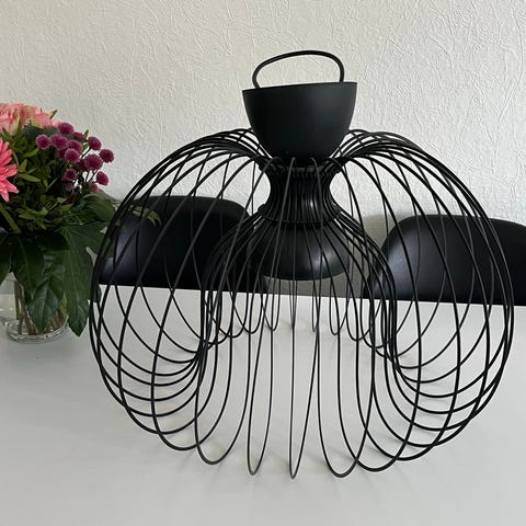 En funktionel loftlampe, som kan justeres efter behov for at få mere eller mindre lys ved at trække på snor.