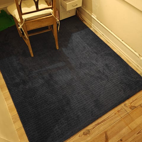 Fremstår i super stand, 80x80 blå med lang lurv.