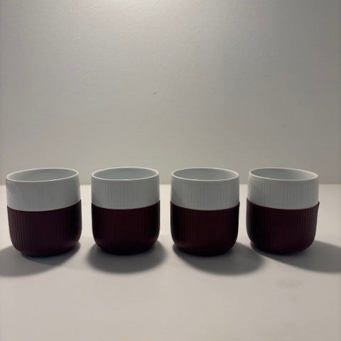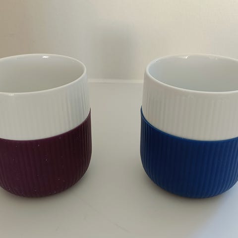 Fire stk. Royal Copenhagen Riflet Contrast krus i farven Lilla (aubergine) sælges. Krusene er brugte men i fin stand uden skår. Sælges samlet til 200 kr, eller enkeltvis til 60 kr pr stik.