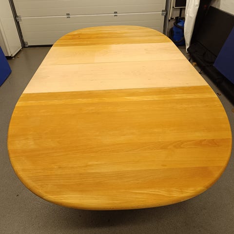Der er et lille hak/ridse i bordet men ellers fremstår det flot.