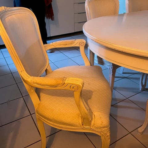 Ovalt spisebord med 4 stk stole i kunstlæder.
