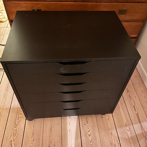 Kommode med 5 skuffer på hjul meget velholdt. Brugt få gange.