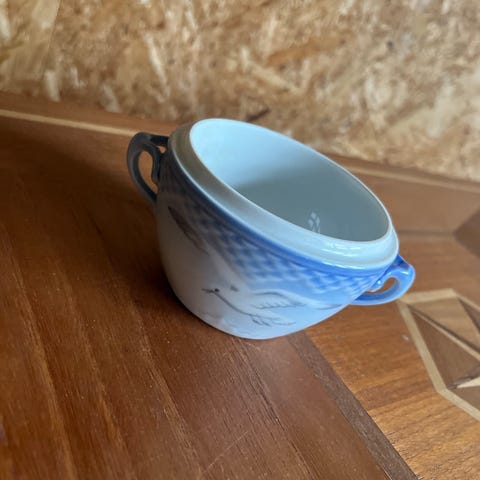 Smukkeste, store sukkerskål fra B&G's klassiske mågestel. Så fine detaljer med hanke, låg og helt uden skår/brugsspor.