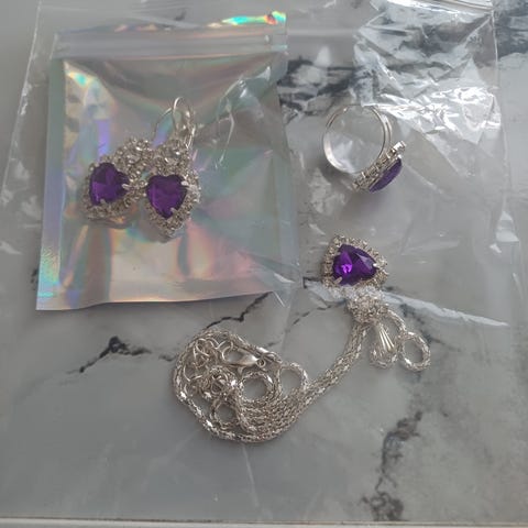 Halskæde ring og øreringe i sølv med lapis. Ikke brugt,