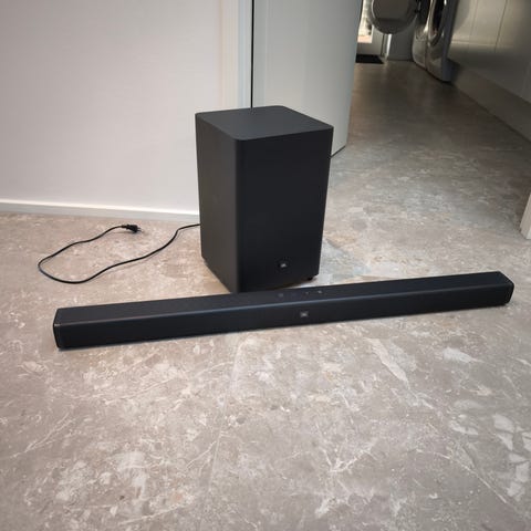 Jeg har denne JBL soundbar med fjernbetjening, dog uden subwoofer /bas til, til salg. Den fungere fint uden, og hvis du vil have lyd rundt omkring, kan man tage de yderste højtalere af og placere andre steder.