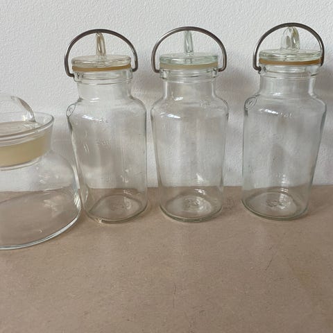 3 stk 2,5 dl H 14 cm. alle mgl låg, 2 med metalring, 1 uden metalring, stk 20/15 kr.