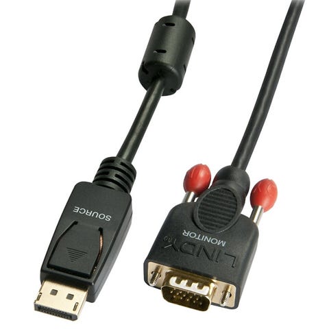 PRIS-MATCH! Lindy Black Displayport til VGA kabel | Displayport til VGA kabel der gør det muligt at tilslutte en PC/bærbar computer med Displayport udgang, til en skærm eller projektor med VGA indgang.