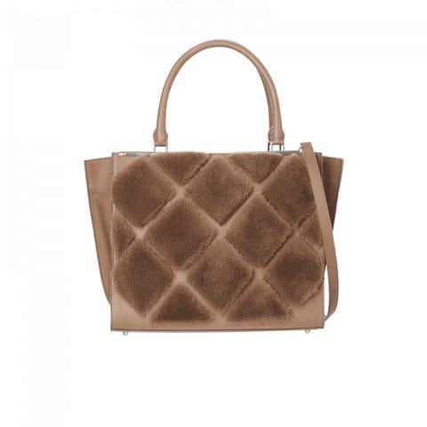 OH! Kopenhagen Fur håndtaske i kalveskind med laserskåret mink