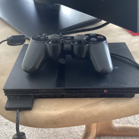 PlayStation 2 med controller og memory card