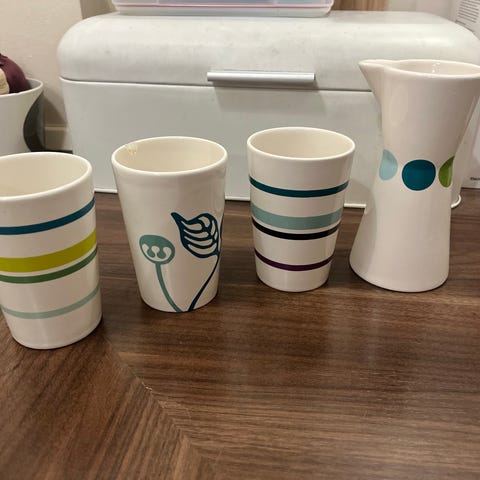5 kopper, sukkerskål, flødekande