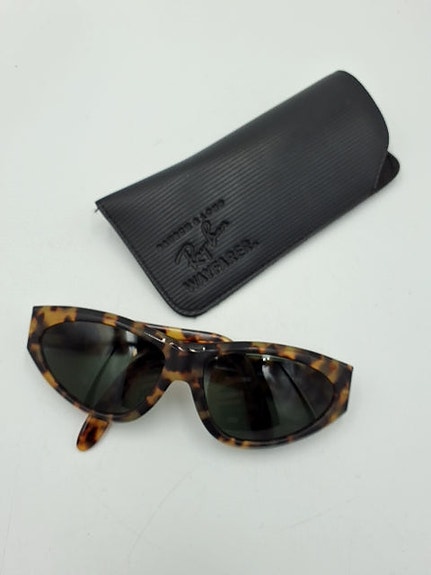Solbriller med ovale linser og guldramme. Fin stand, stellet er lidt løst.,Afhentes i:,Røde Kors Egå (751),Bemærk at mail, chat og beskeder ikke besvares, og varen skal købes på knappen "Gå til varen"