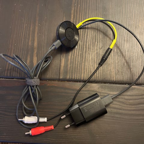 Google Chromecast Audio trådløs musikstreamer sort og gul
