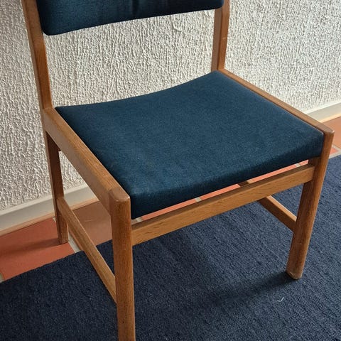 Stolen fik dengang en ludbehandling, som nemt kan slibes af. Man sidder supergodt i stolen. Det er egetræ.500 kr. Afhentes i Risskov.