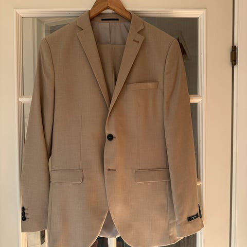 Flot jakkesæt brugt en halv dag, slim fit. Sidder flot og fejler intet.