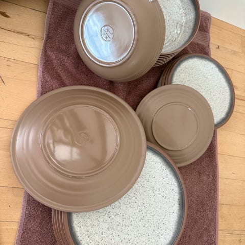 Udvalg af tallerkener i robust design - til sommerhuset, campingtur, picnic og haven. I alt 20 stk.