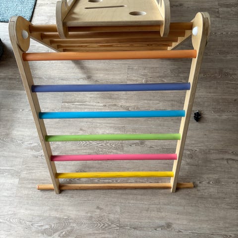 Her sælges en motorik klatrestativ. Købt i Lidle men kun samlet aldrig brugt. Kender ikke mærket.