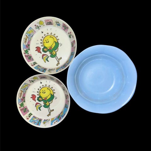 Børnetallerkener og skåle med motiver