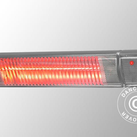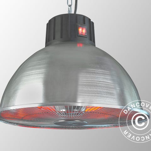 Elegant og moderne terrassevarmer eller varmelampe med fjernbetjening til den overdækkede terrasse eller inde i et partytelt, havepavillon eller foldetelt. Du kan bruge den effektive og elegante varmelampe udenfor på den overdækkede terrasse eller indenfor i et partytelt til fest, familiesammenkomster eller ganske enkelt til hverdag, når du vil nyde lidt tid udenfor uden at fryse. Den behagelige varme fra den effektive varmelampe kan forlænge dine aftener på terrassen med mere. Varmelampen har et enkelt varmelegeme på 1500 Watt og bliver leveret med en kæde, så den er lige til at hænge op. Der følger også 1,6 m ledning med til lampen, som har klassifikationen IPX4, der betyder, at den kan bruges udendørs men helst i et overdækket område.