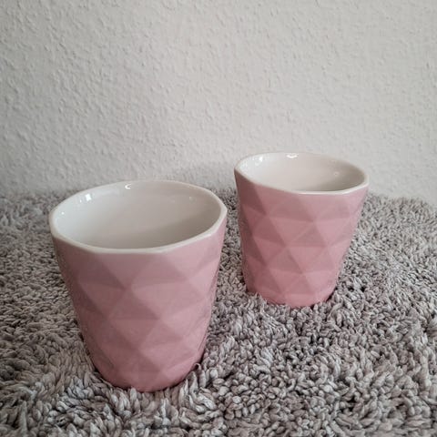 Gule kopper. 9 ens store kopper lysegul og hvid, Tekopper fra Falby / SAMLET PRIS, 9 helt ens pastelfarvede kopper i lys gul med hvid inderside. De rummer godt 2 dl.