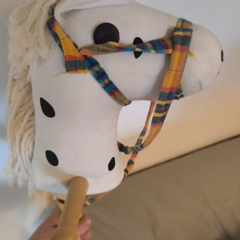 Solid, intakt Kæphest, hobby horse fra Panduro. Der kan købes udstyr til den , det bliver sat til salg senere. Hjemmelavede øjne og man kan laves som man selv ønsker.