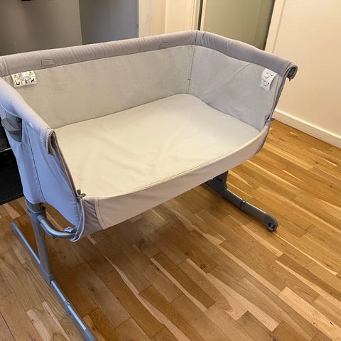 Rigtig fin seng til baby som gør det muligt at man kan sove trygt og tæt på hinanden.