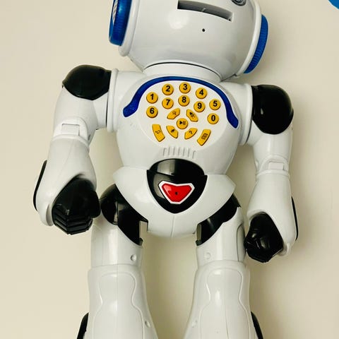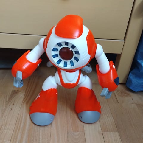 Robotten leveres med en fjernbetjening med flere funktioner, herunder demo, stop, program og forskellige bevægelseskommandoer. Robotten har bevægelige arme og ben. Velegnet til børn til leg og underholdning.