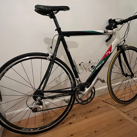 Vi har bygget den op på en spritny second hand ramme i matsort – uden ridser, mærker eller logoer. Resultatet? En fuldstændig clean cykel, hvor kun det smukke beige styrbånd bryder det sorte look og giver den lidt kant og karakter.