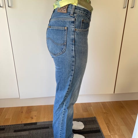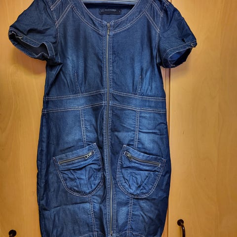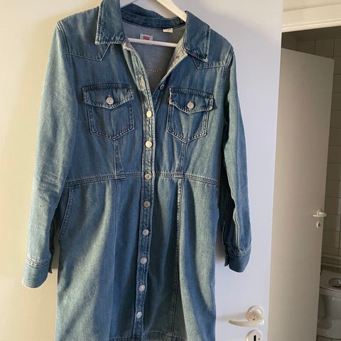 Lee Hverdagskjole i blå denim til damer, størrelse L. Kjolen har langærmet design med knaplukning foran og en brystlomme. Materialet er denim.
