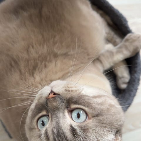 Mori er British Shorthair, 1 år og 4 måneder gammel, med et meget roligt, kærligt og afbalanceret temperament.