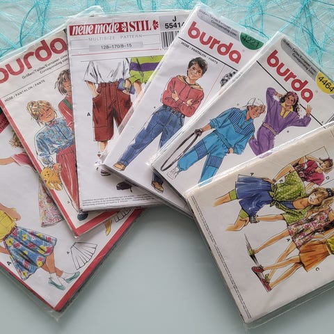 Intakte retro modeblade inkl. Vejledning og mønsterark, nogle af bladene er aldrig blevet brugt.