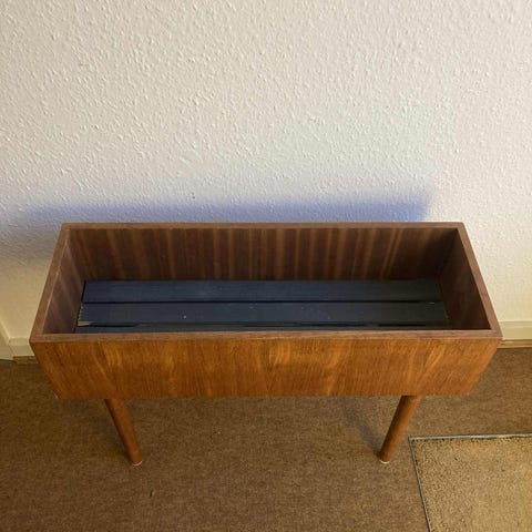 Meget charmerende blomsterkasse fra 1960'erne med teaktræsben og beklædt med skai.