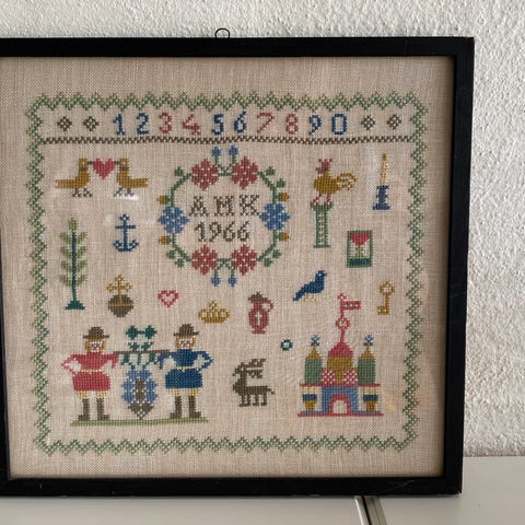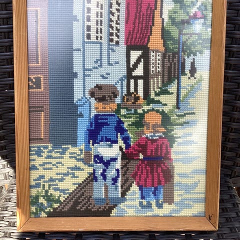 Broderi, Broderet Retro billede i gammel træ billedramme