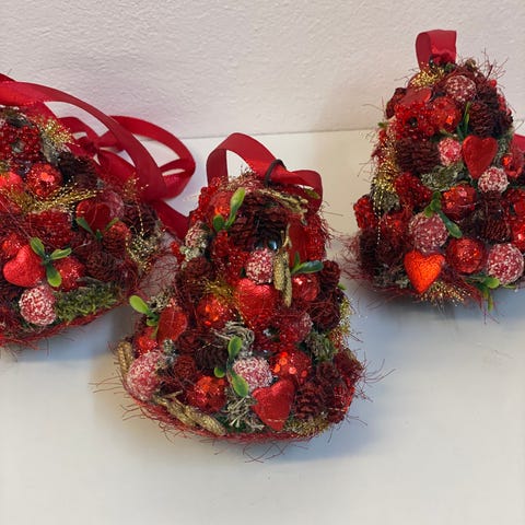 Julepynt, Juledekorationer til bord eller vindue, juletræer, kogler, hjerter, kranse, kræmmerhus, guirlander, kugler, lavet i kunstige materialer, som holder i mange år. Mange forskellige farver og kombinationer. Hvis eventuelle særlige ønsker, så kontakt mig. Inspiration fra Bering, House of Flowers 27