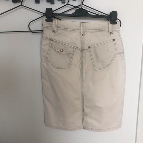 str. 36, Green House, -, -bomuld, Næsten som ny, Har denne fine nederdel i overskud, sælges da jeg ikke får den brugt. 100 % bomuld og god, stærk kvalitet. Den er 63 cm lang inkl 24 cm lang slids. Slidsen er med lynlås i begge sider. Side lommer i begge sider, lukkes med lynlås midt på livet hvor der er snøre. Den skal lige stryges :-) Spørg efter mere info, jeg sender gerne