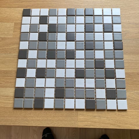 Sælger fliser fra Mosiakhjørnet, da vi har købt for mange. Fliserne er 9,8 x 9,8 cm, og i farverne: silke mat, pulver mat, mint mastik mat og gul mat.