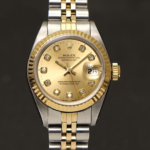 Rolex Datejust 69173 med bokse og papirer fra 1991. Det klassiske dame Datejust i 26 mm, som her kommer med safirglas, den flotte Jubilee silver skive med diamanter og på Jubilee lænke. Fremstår i ultra flot upoleret stand, hvor der også stadig er rest af sticker på bagkassen. Eneste brugsspor er få og små hairlines. Værket er med automatik og quick set dato.