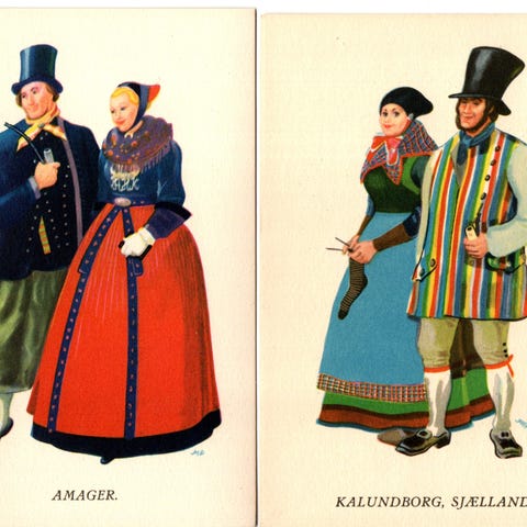Jeg har mange kasser med postkort af danske folkedragter liggende. Eksemplerne på billederne er dem jeg kunne finde, men der gemmer sig muligvis flere varianter. Man kan købe dem enkeltvis til 5 kr. stykket. Skal der købes mange giver jeg gerne mængderabat. De fremstår alle i pæn stand, men de er gamle så nogle er dem runder lidt i formen. Forsendelig afhænger helt af mængden, men sender gerne hvis det er nødvendigt.