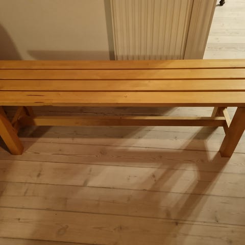 Flettet bænk fra IKEA Stockholms kollektion. Det er den store model på 160 cm. Og 40 cm bred og 40 cm høj. Almindelig brugsslitage og flere skader på flettet, men stadig fin funktion - se billeder.