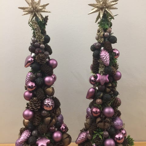 Julepynt, Juledekorationer til bord eller vindue, juletræer, kogler, hjerter, kranse, kræmmerhus, guirlander, kugler, lavet i kunstige materialer, som holder i mange år. Mange forskellige farver og kombinationer. Hvis eventuelle særlige ønsker, så kontakt mig. Inspiration fra Bering, House of Flowers 59