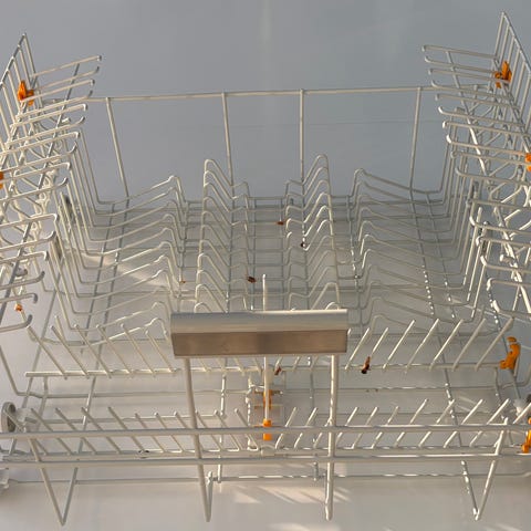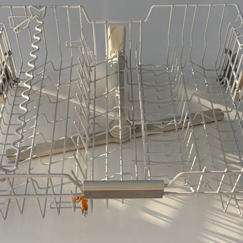 Miele G 4200 opvaskemaskine i hvid farve. Maskinen har indvendige kurve som er lidt rustne