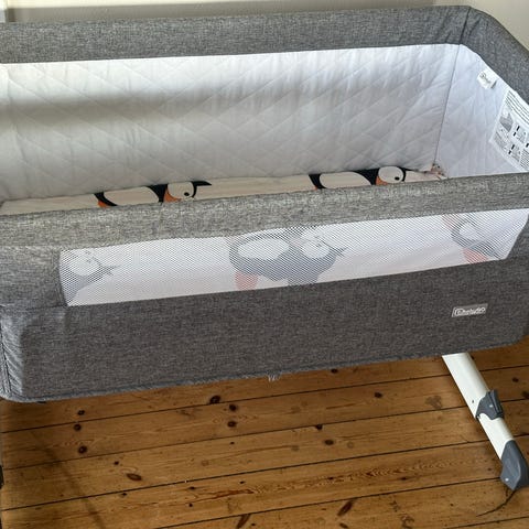 Perfekt som bedside crib til de første måneder – kan nemt justeres i højden og monteres sikkert ved siden af forældresengen.